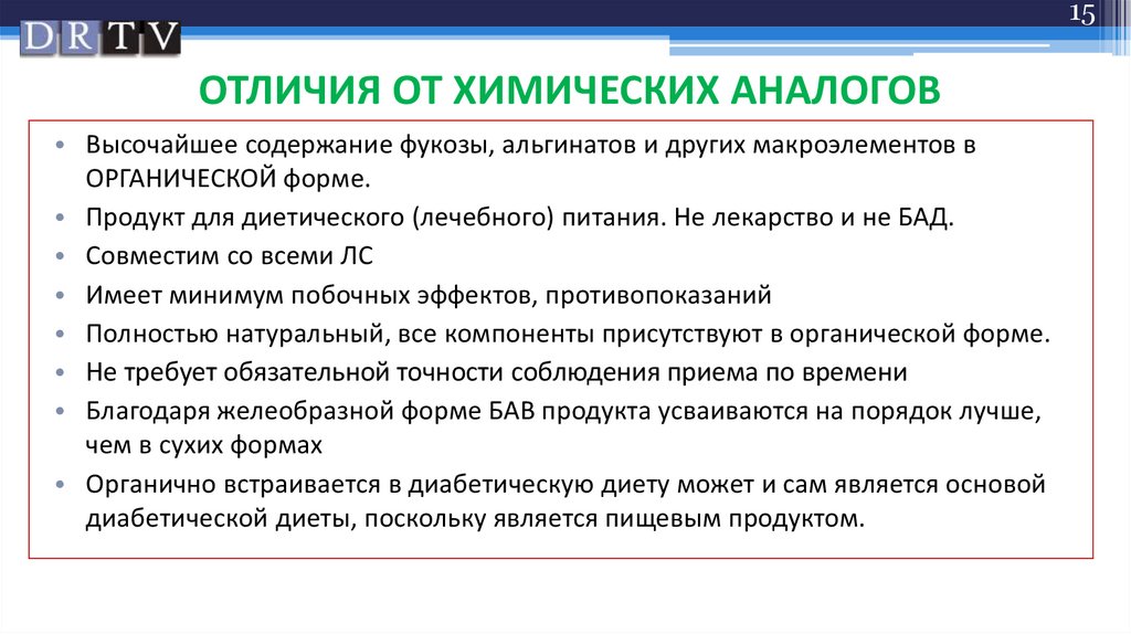 15ОТЛИЧИЯ ОТ ХИМИЧЕСКИХ АНАЛОГОВ