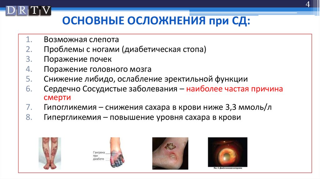 4ОСНОВНЫЕ ОСЛОЖНЕНИЯ при СД: