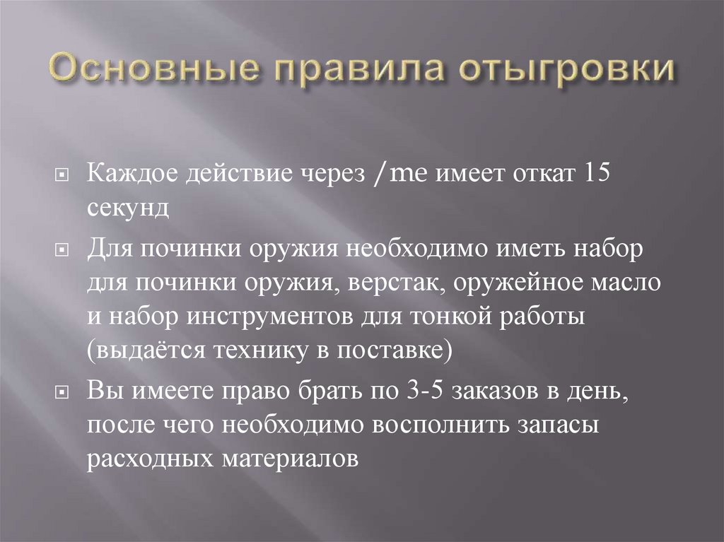 оружия. Для того, чтобы отгрывать у нас на сервере