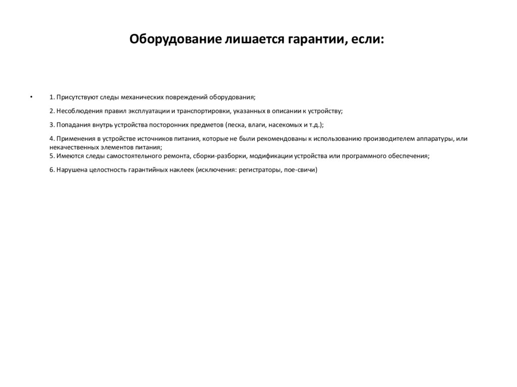 6. Нарушена целостность гарантийных наклеек (исключения: регистраторы, пое-свичи)