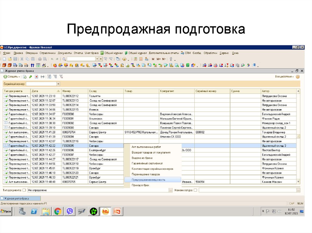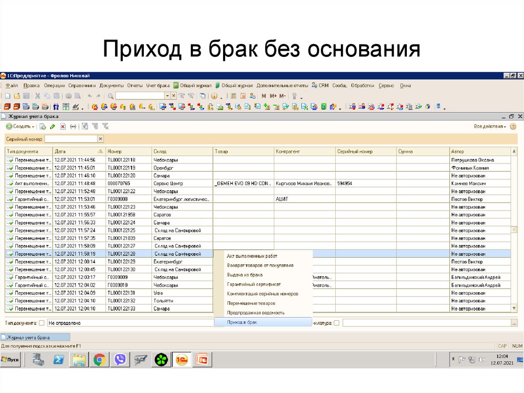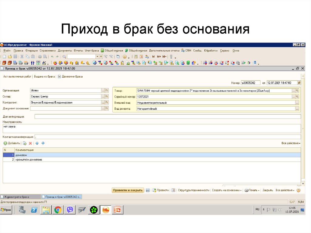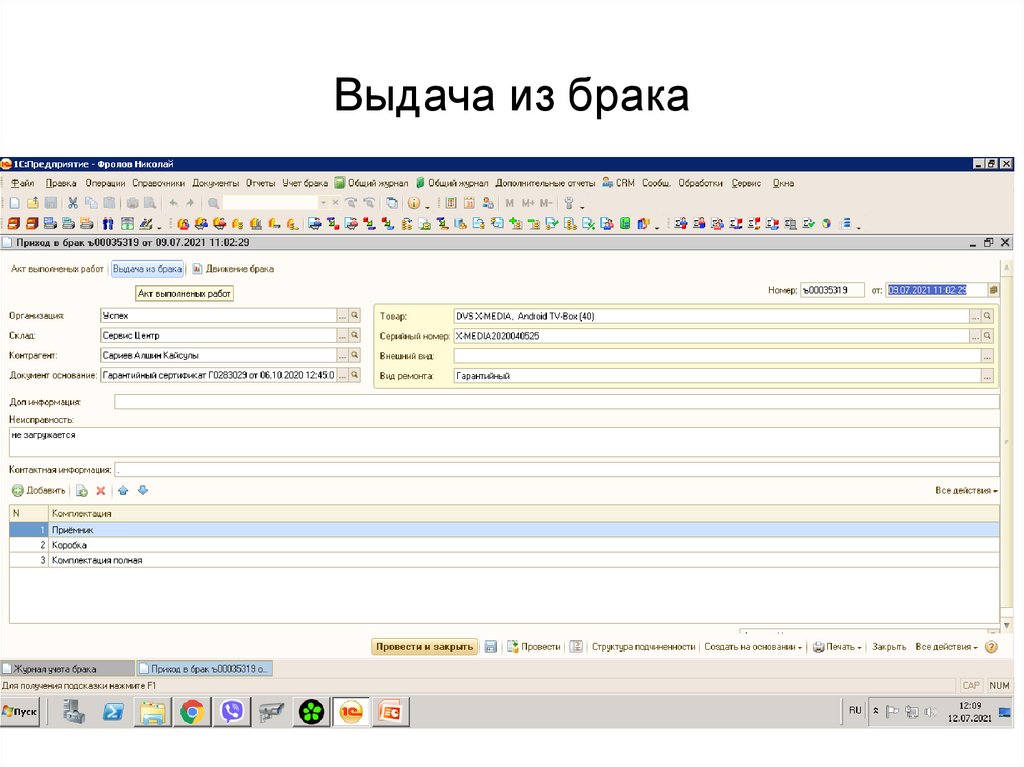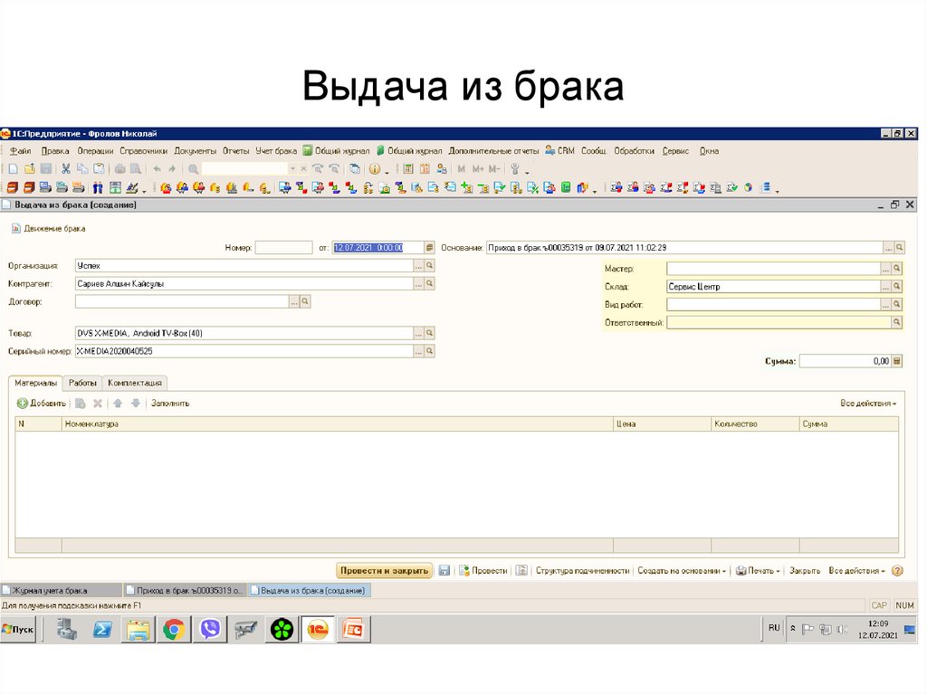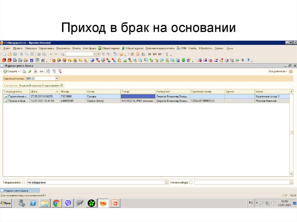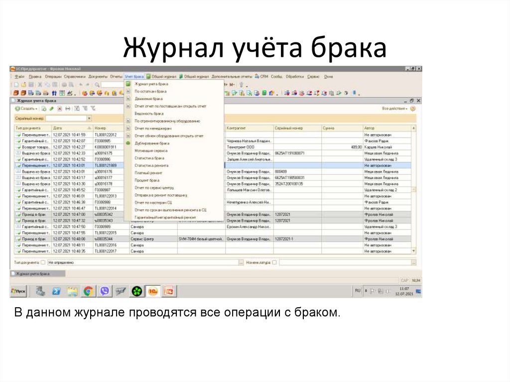 Журнал учёта бракаВ данном журнале проводятся все операции с браком.