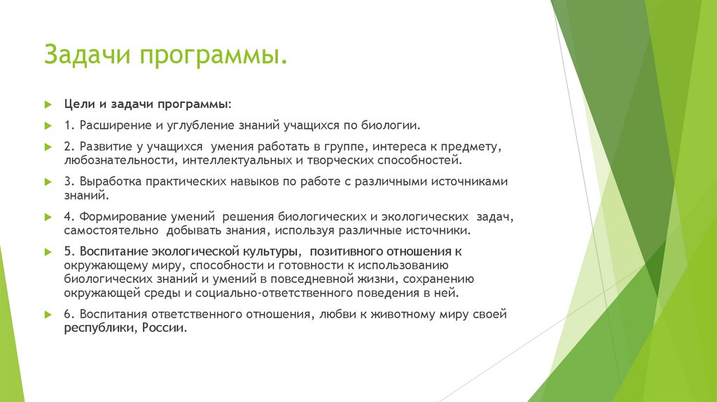 6. Воспитания ответственного отношения, любви к животному миру своей