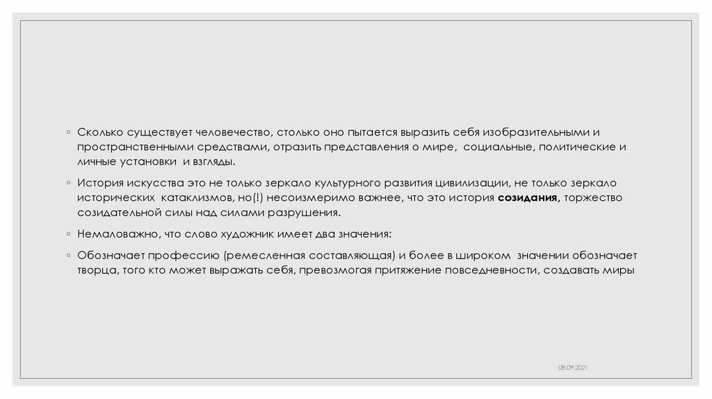 ◦ История искусства это не только зеркало культурного развития цивилизации, не только зеркало