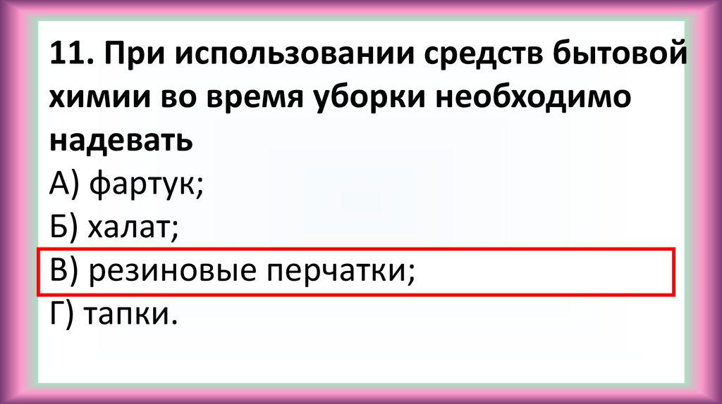 11. При использовании средств бытовойхимии во время уборки необходимо
