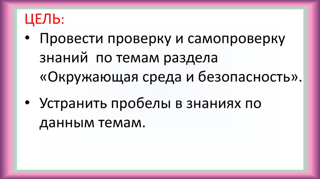 ЦЕЛЬ:• Провести проверку и самопроверку