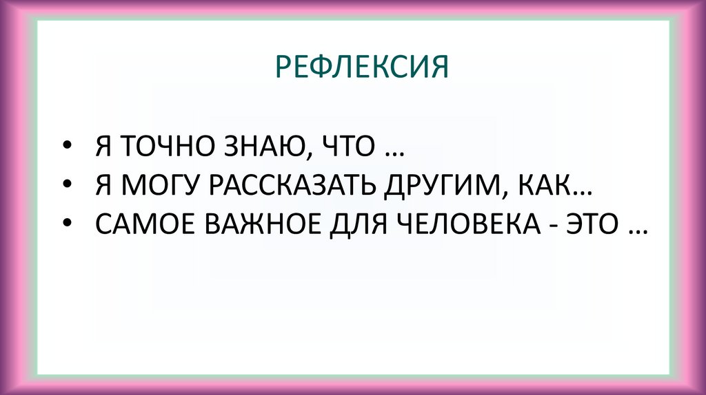 РЕФЛЕКСИЯ• Я ТОЧНО ЗНАЮ, ЧТО …
