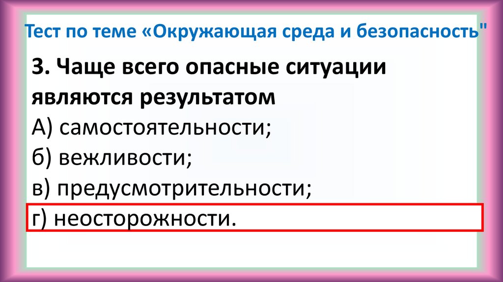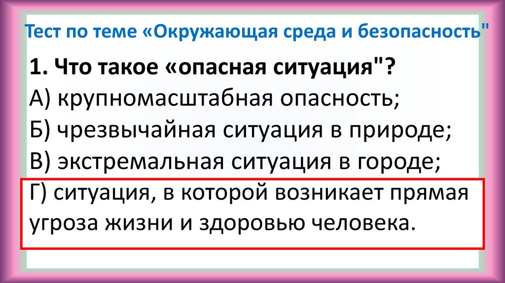 Тест по теме «Окружающая среда и безопасность"3. Чаще всего опасные ситуации