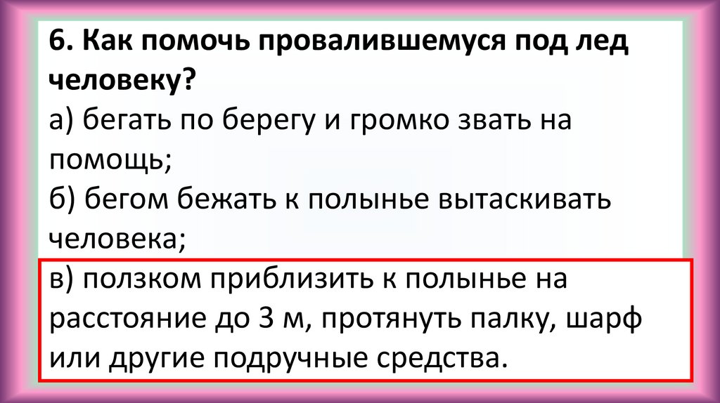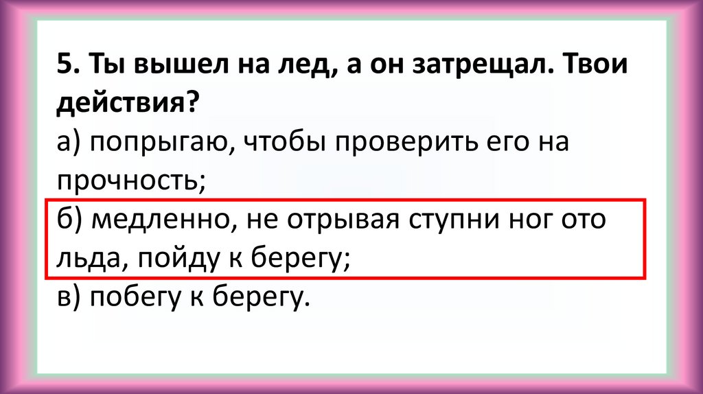 5. Ты вышел на лед, а он затрещал. Твоидействия?