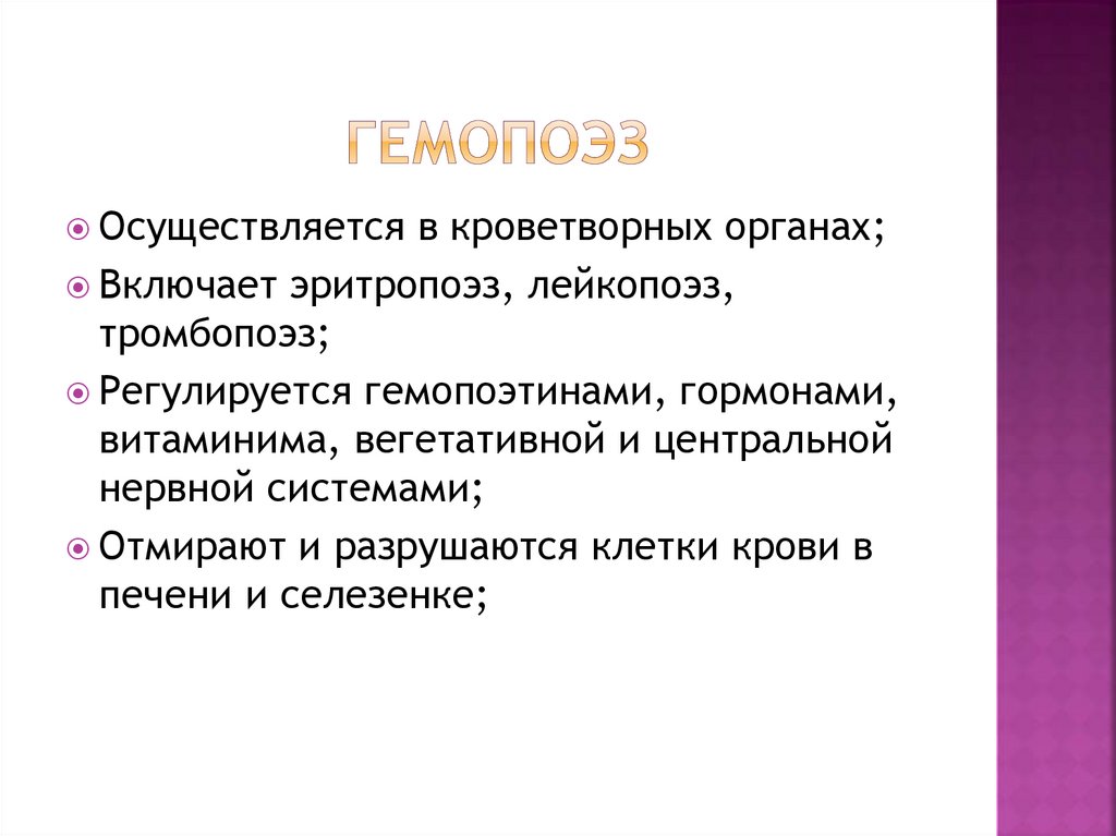 Регулируется гемопоэтинами, гормонами,
