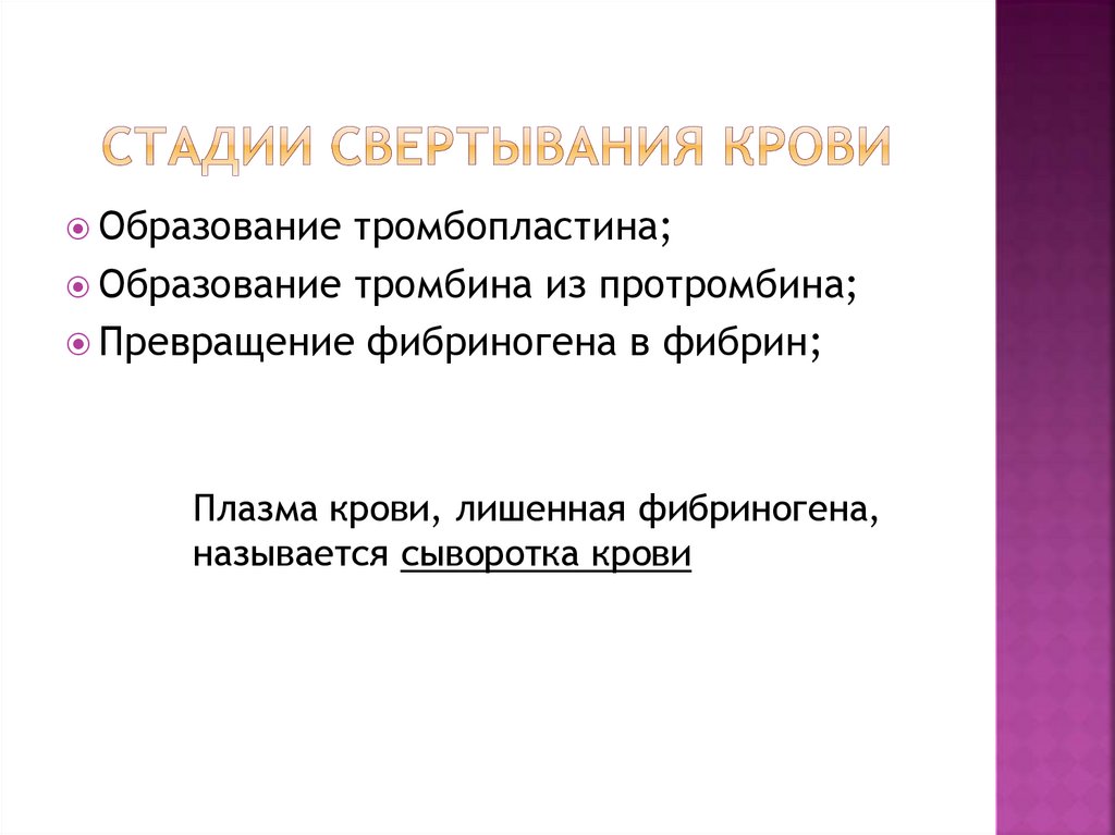 Превращение фибриногена в фибрин;