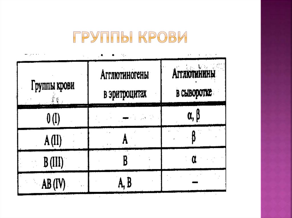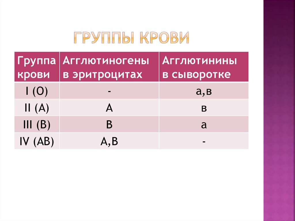 Группа Агглютиногеныкрови в эритроцитах