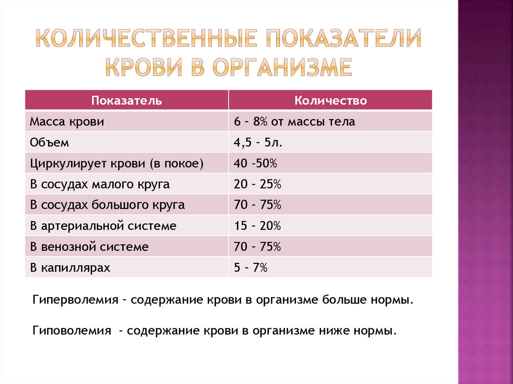 Гиповолемия - содержание крови в организме ниже нормы.