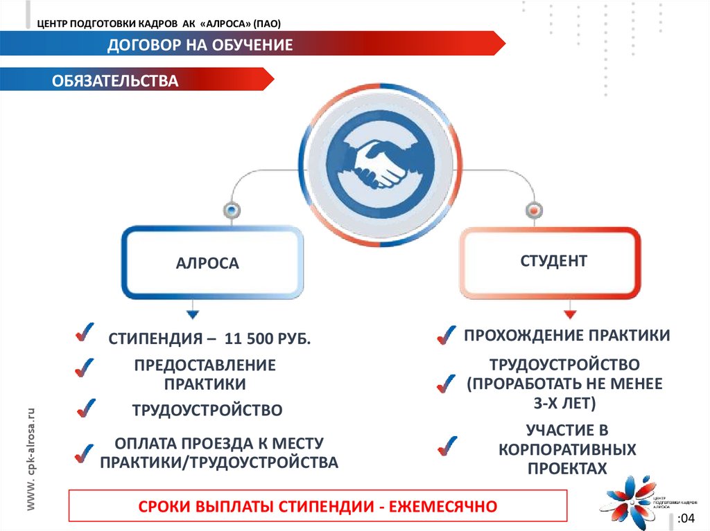 ЦЕНТР ПОДГОТОВКИ КАДРОВ АК «АЛРОСА» (ПАО)ДОГОВОР НА ОБУЧЕНИЕ
