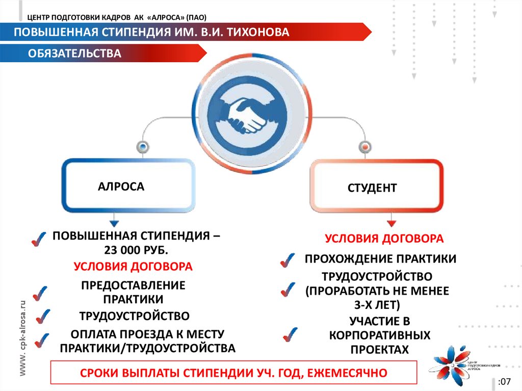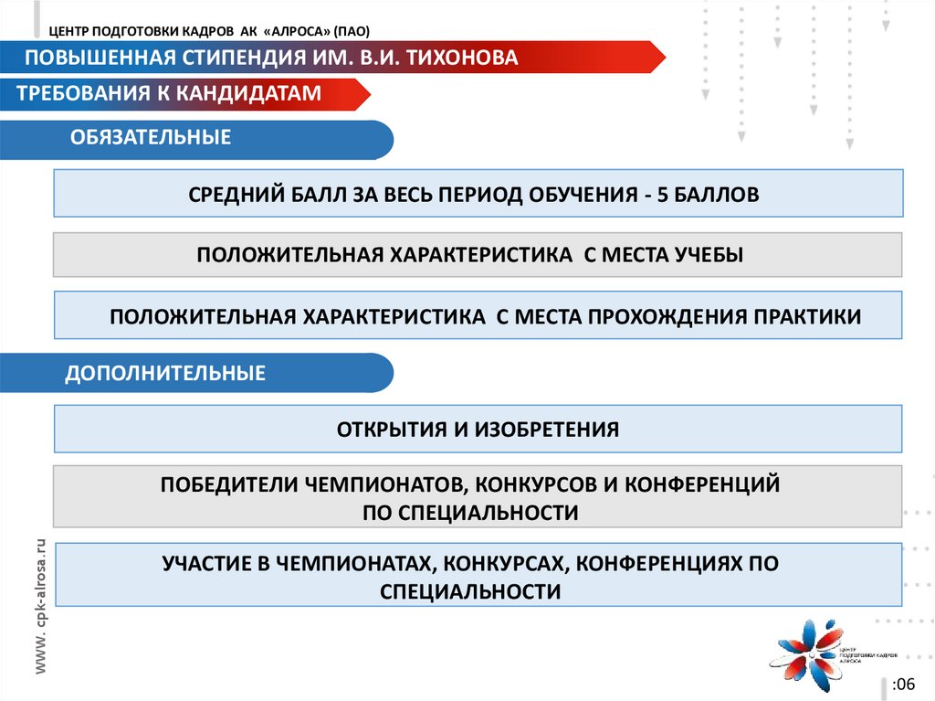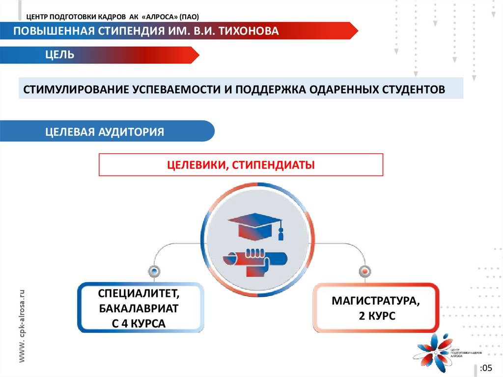 ЦЕНТР ПОДГОТОВКИ КАДРОВ АК «АЛРОСА» (ПАО)ПОВЫШЕННАЯ СТИПЕНДИЯ ИМ. В.И. ТИХОНОВА