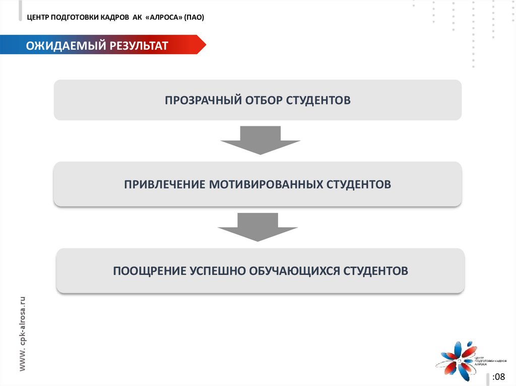 ЦЕНТР ПОДГОТОВКИ КАДРОВ АК «АЛРОСА» (ПАО)ОЖИДАЕМЫЙ РЕЗУЛЬТАТ