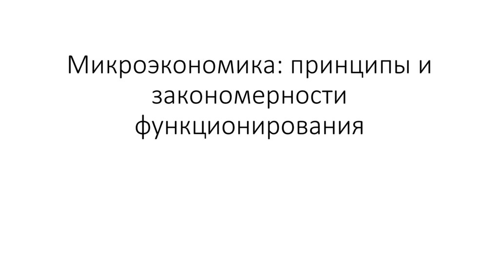 Микроэкономика: принципы и закономерности функционирования