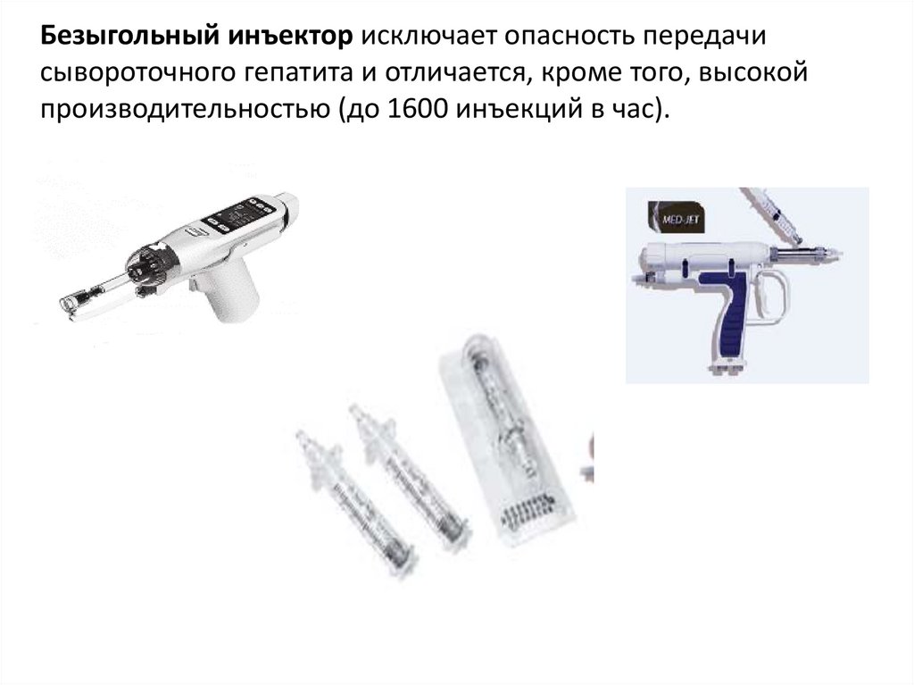 Безыгольный инъектор исключает опасность передачисывороточного гепатита и отличается, кроме того, высокой