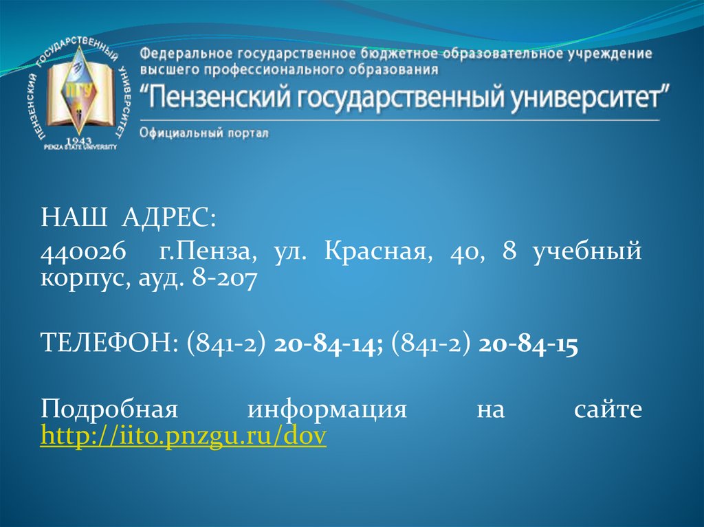 НАШ АДРЕС:440026 г.Пенза, ул. Красная, 40, 8 учебный