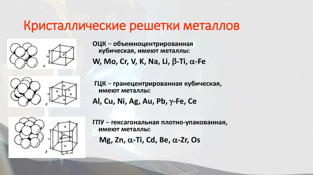Кристаллические решетки металловОЦК – объемноцентрированная