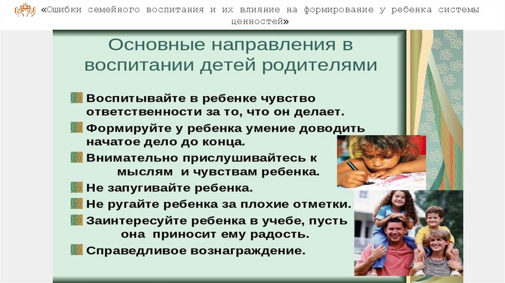 Ошибки семейного воспитания их влияние на формирование у ребенка системы ценностей