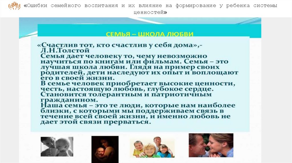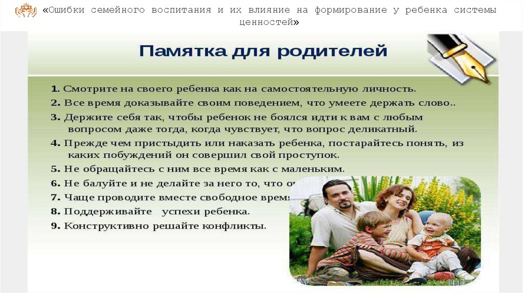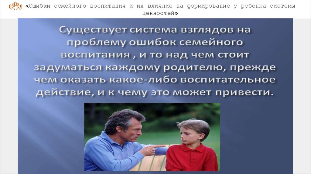 «Ошибки семейного воспитания и их влияние на формирование у ребенка системыценностей»