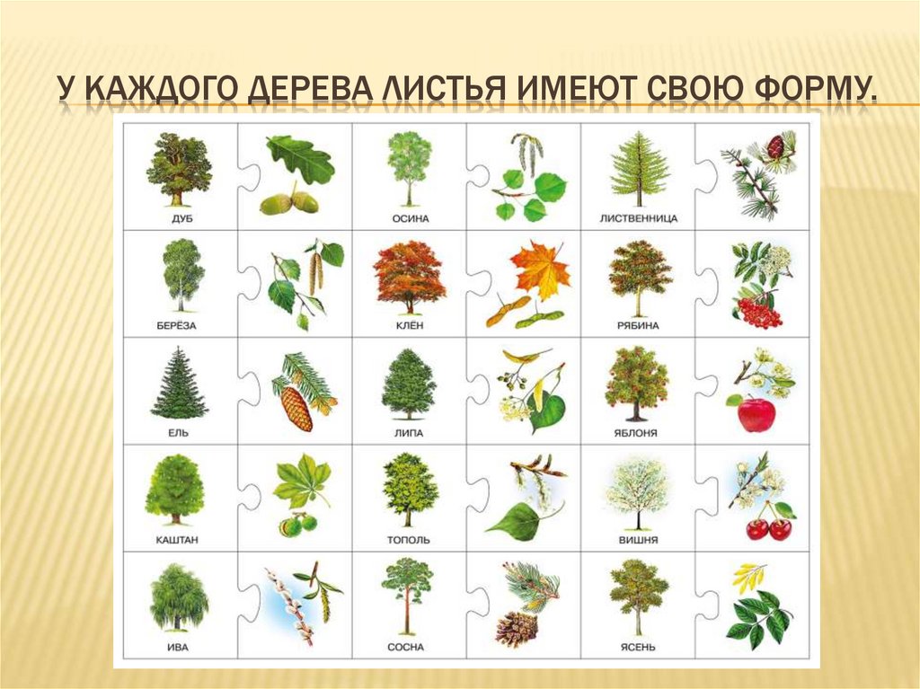 У КАЖДОГО ДЕРЕВА ЛИСТЬЯ ИМЕЮТ СВОЮ ФОРМУ.
