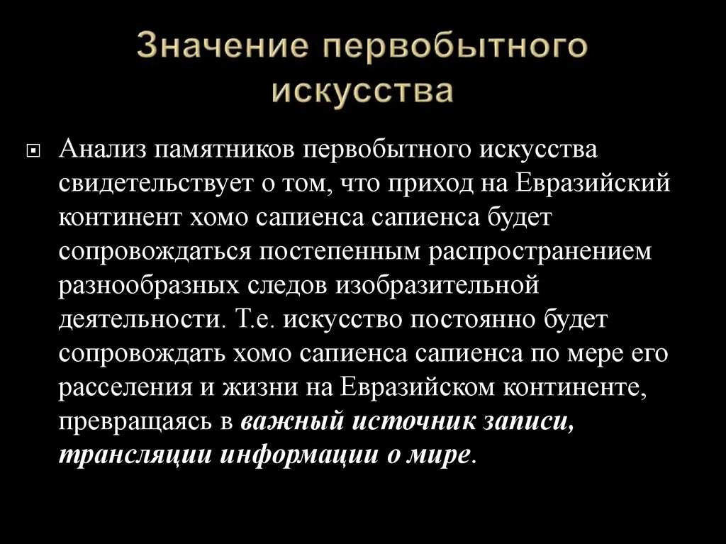 Анализ памятников первобытного искусствасвидетельствует о том, что приход на Евразийский
