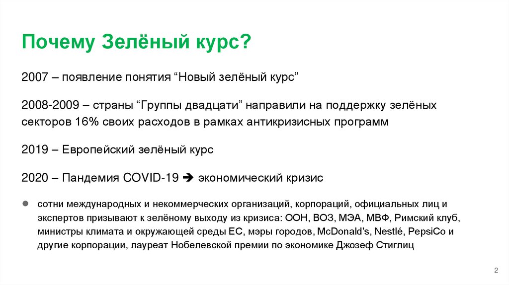 Почему Зелёный курс?2007 – появление понятия “Новый зелёный курс”