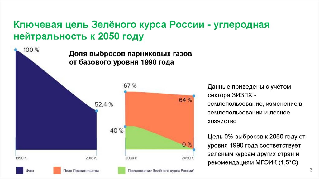 Ключевая цель Зелёного курса России - углероднаянейтральность к 2050 году