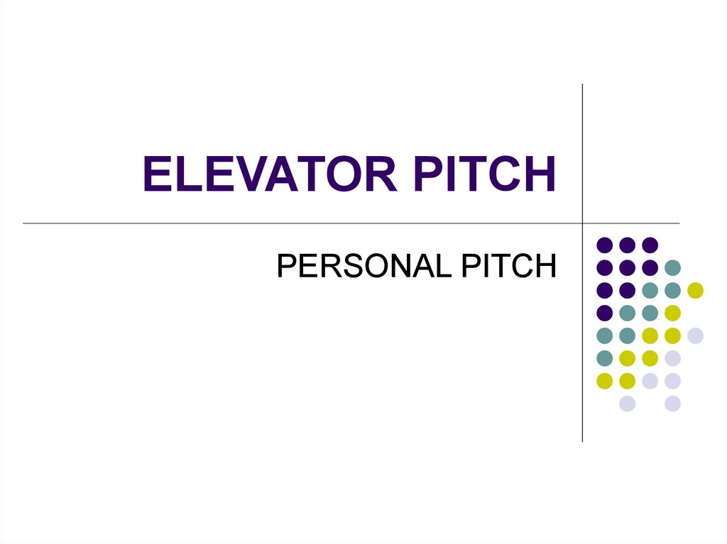 PERSONAL PITCH2. PERSONAL ELEVATOR PITCH