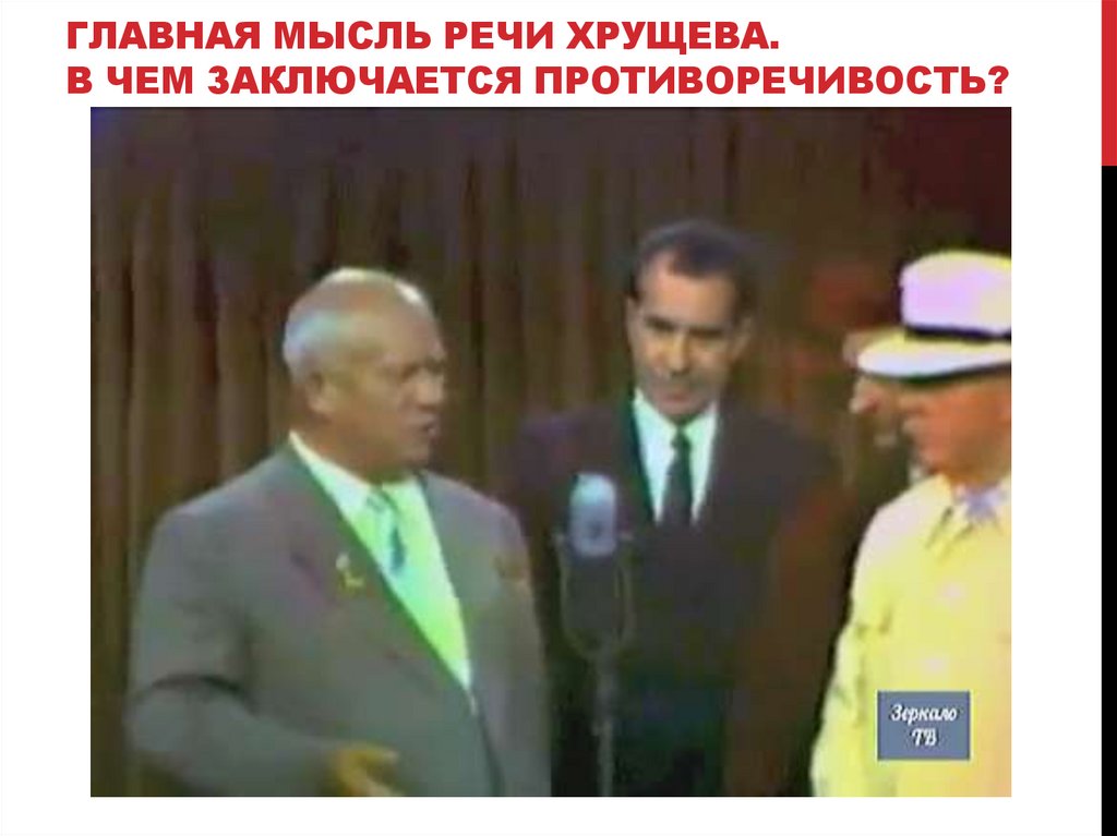 ГЛАВНАЯ МЫСЛЬ РЕЧИ ХРУЩЕВА.В ЧЕМ ЗАКЛЮЧАЕТСЯ ПРОТИВОРЕЧИВОСТЬ?