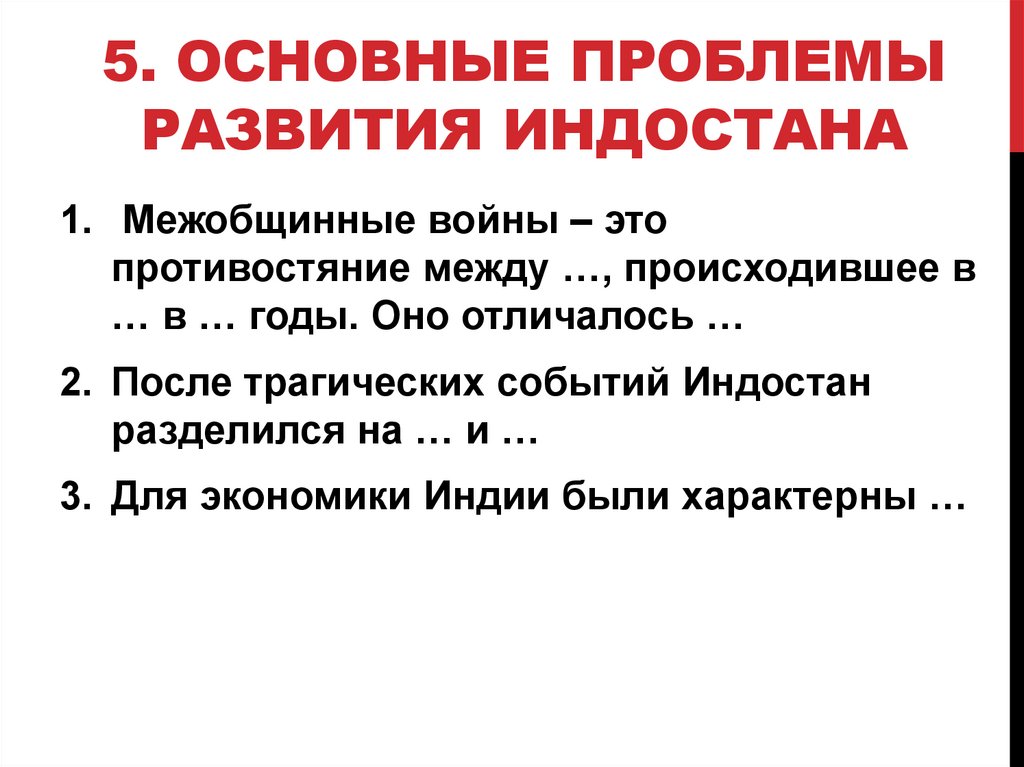 5. ОСНОВНЫЕ ПРОБЛЕМЫРАЗВИТИЯ ИНДОСТАНА