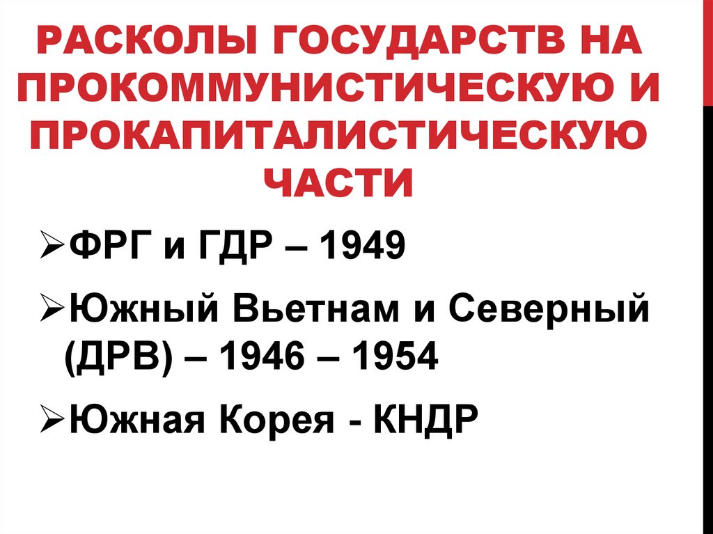 РАСКОЛЫ ГОСУДАРСТВ НАПРОКОММУНИСТИЧЕСКУЮ И