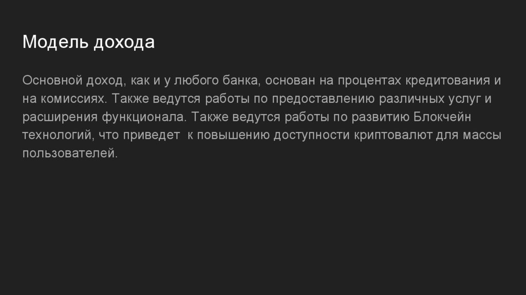 Модель доходаОсновной доход, как и у любого банка, основан на процентах кредитования и