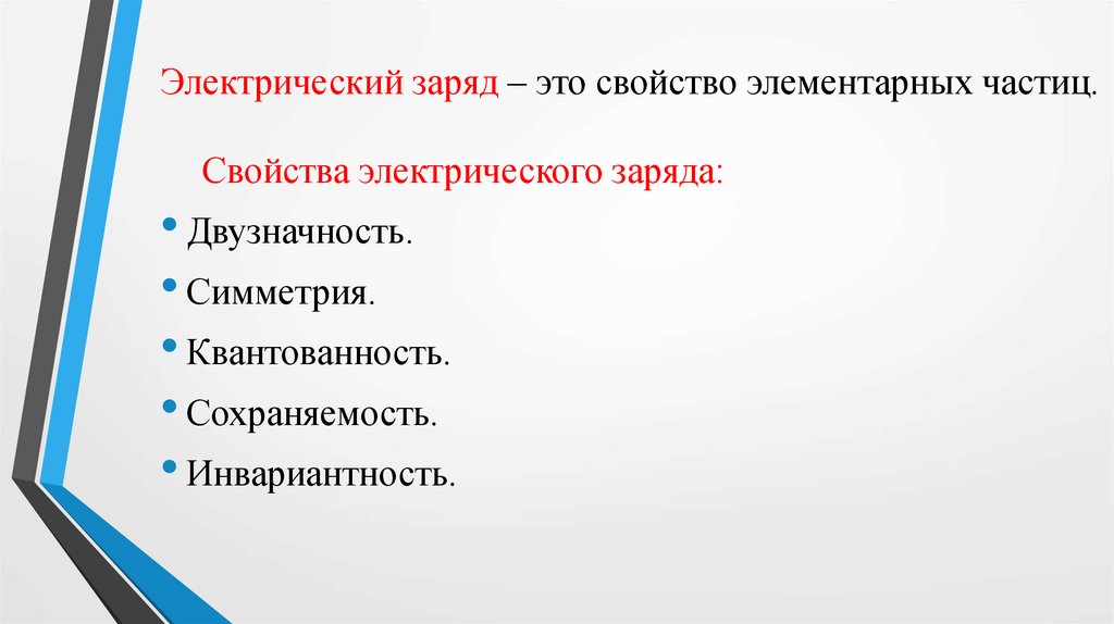 Электрический заряд – это свойство элементарных частиц.Свойства электрического заряда: