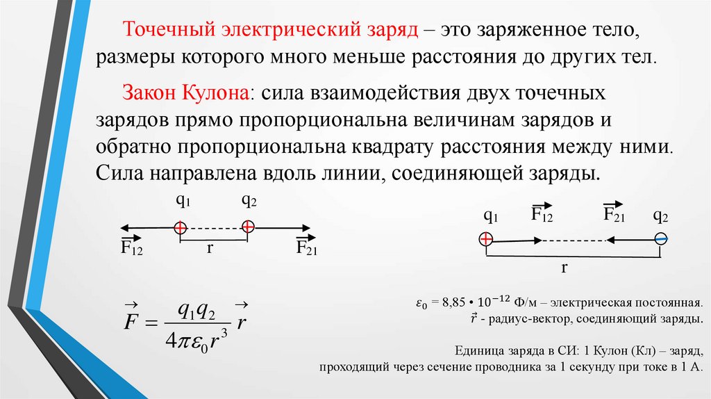 Точечный электрический заряд – это заряженное тело,размеры которого много меньше расстояния до других тел.
