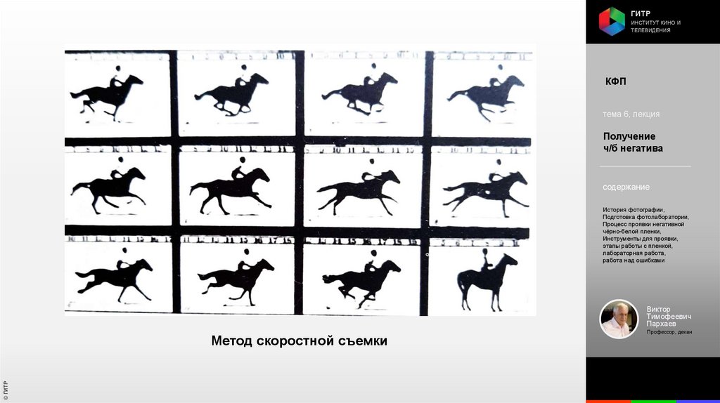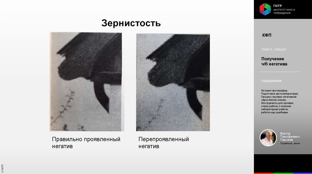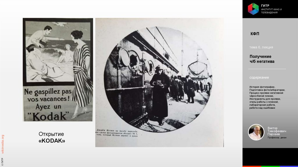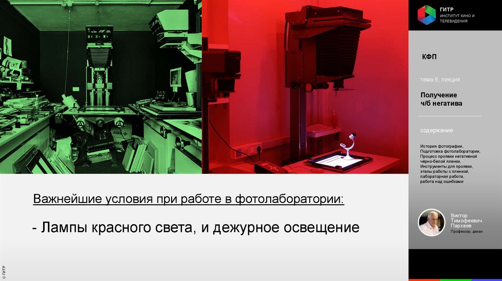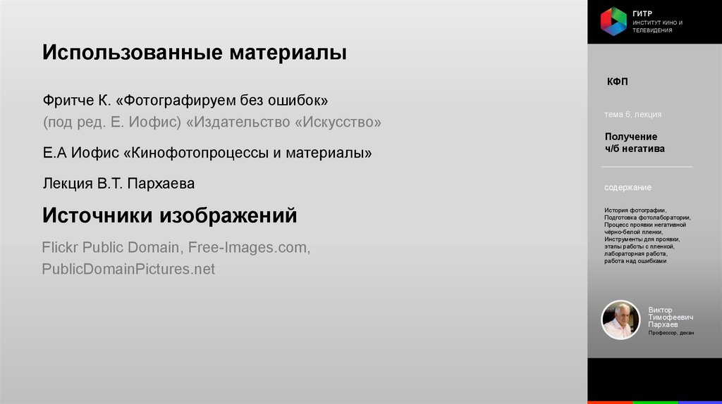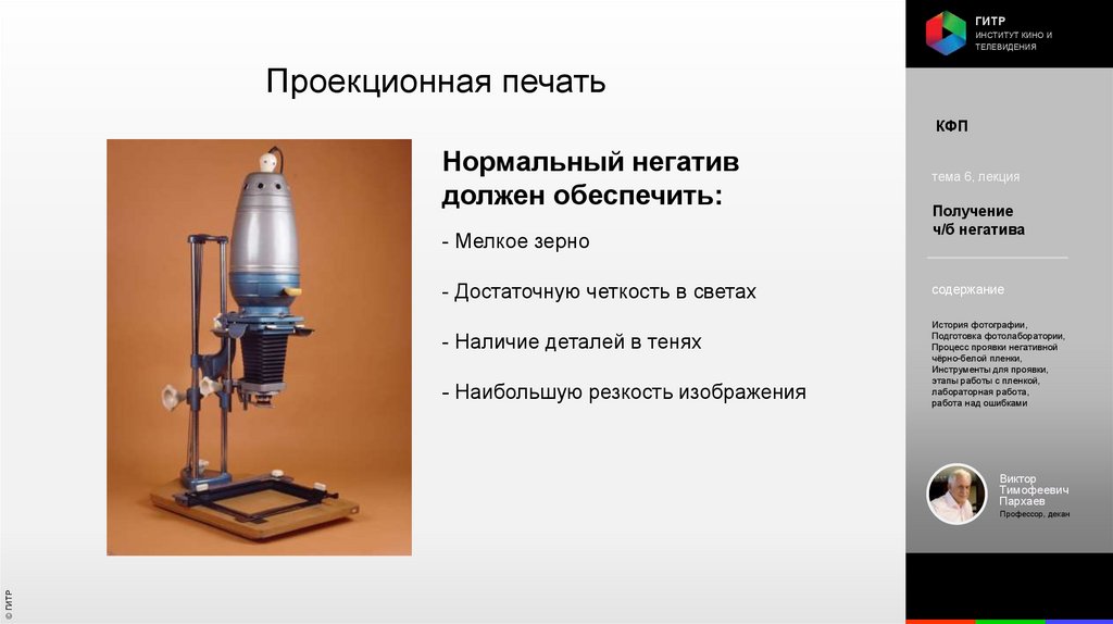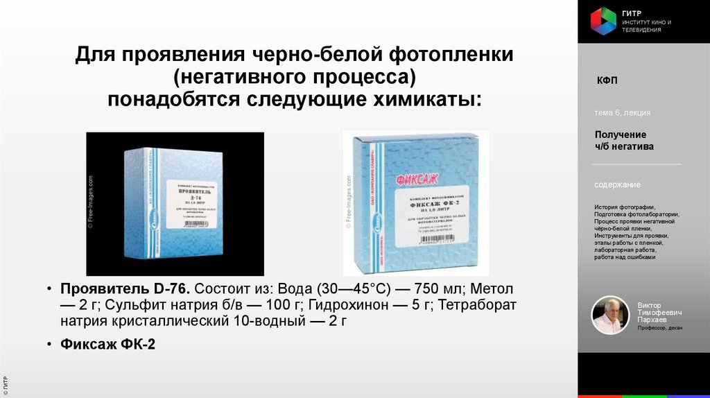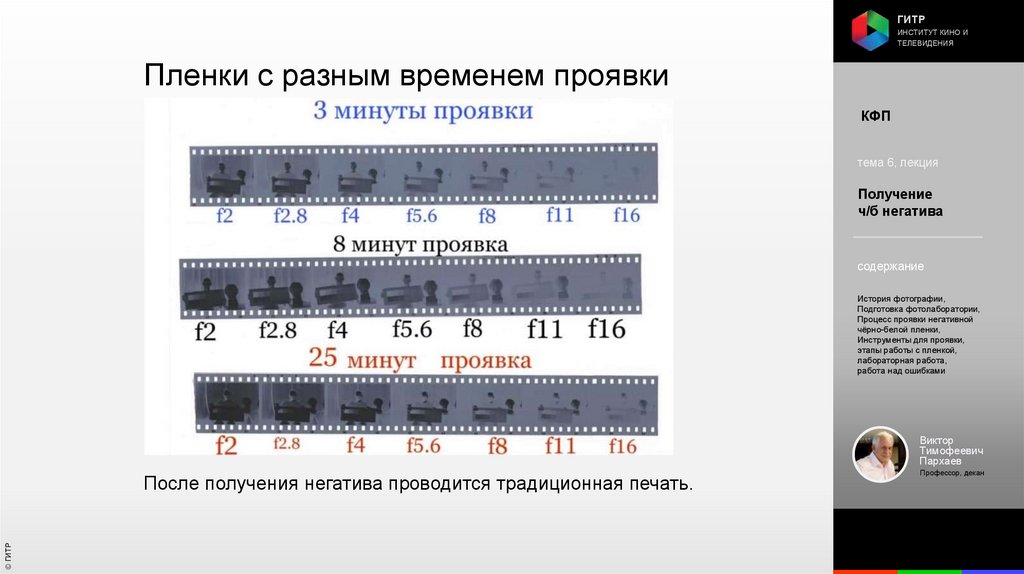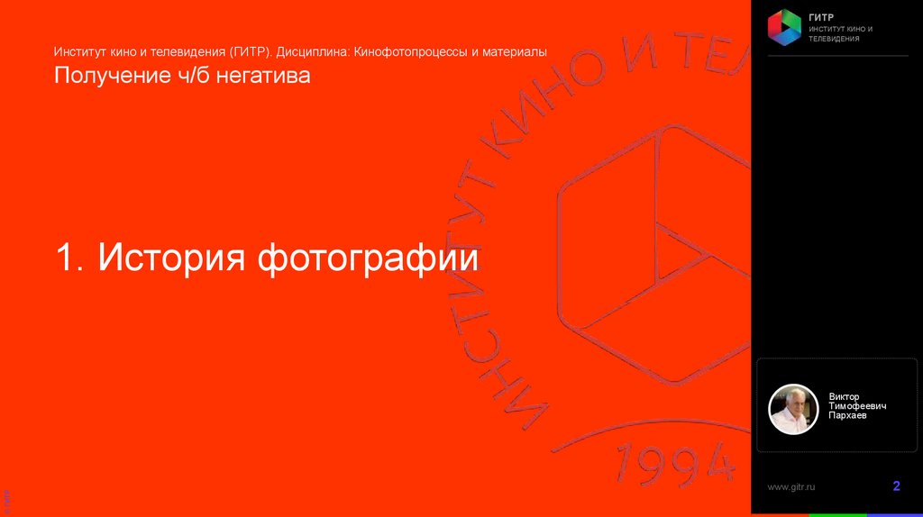 Институт кино и телевидения (ГИТР). Дисциплина: Кинофотопроцессы и материалы