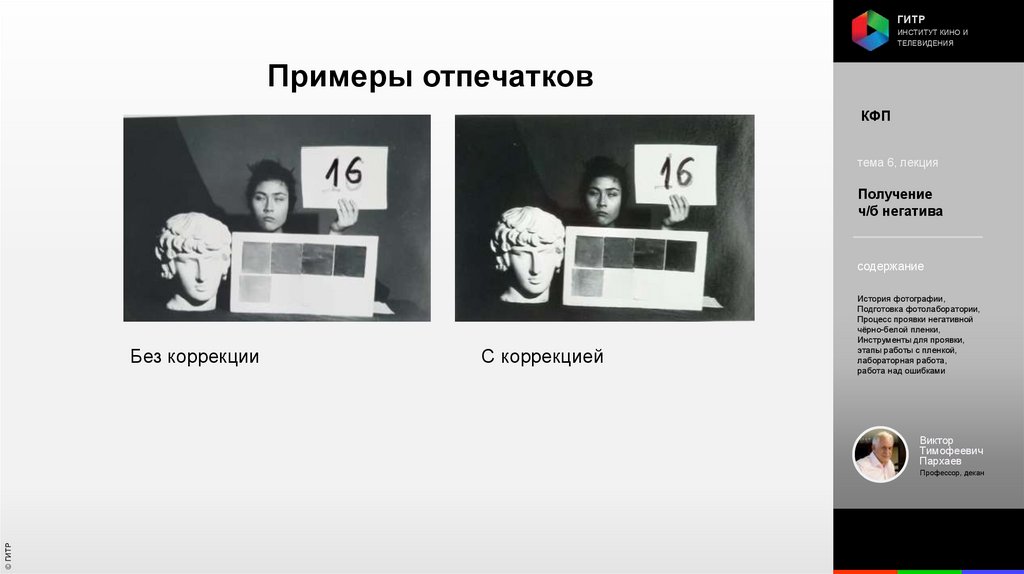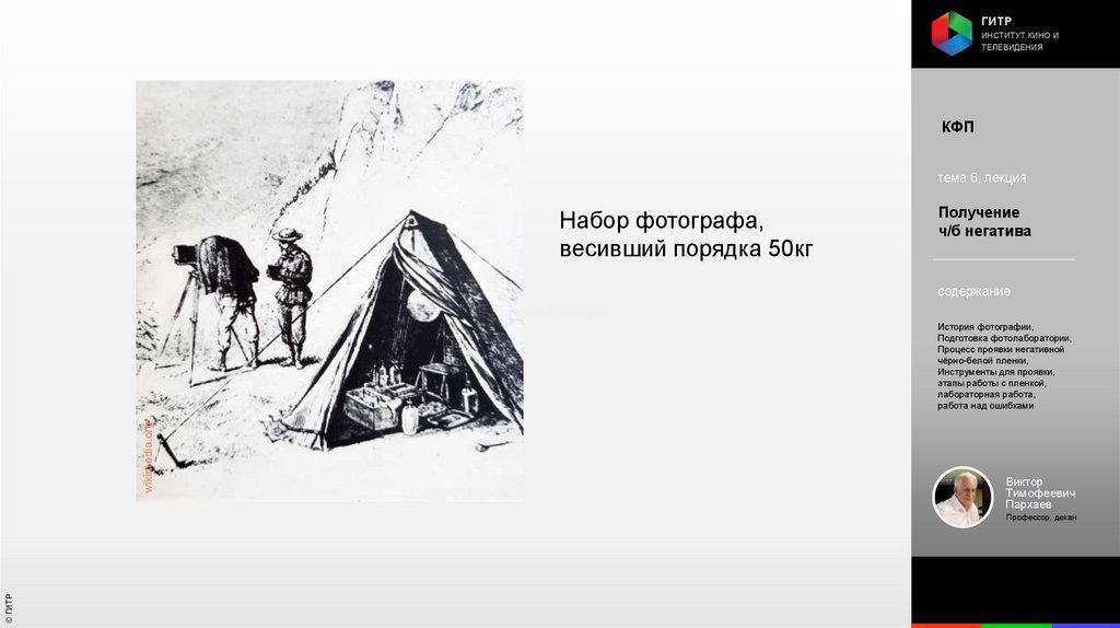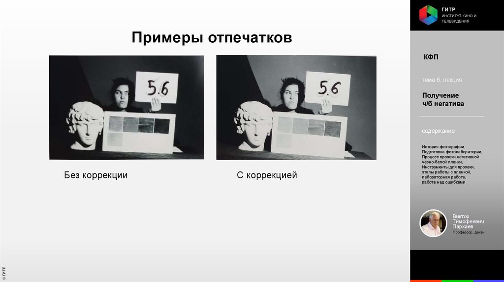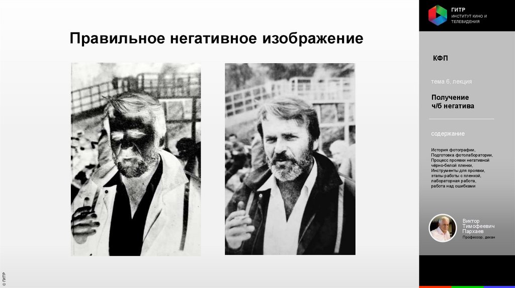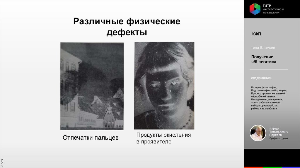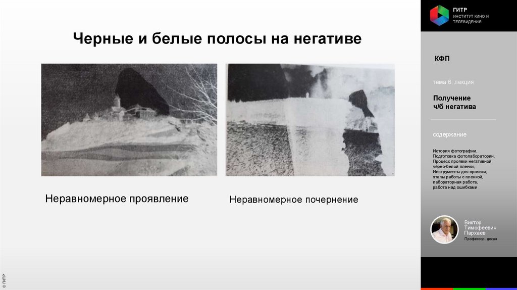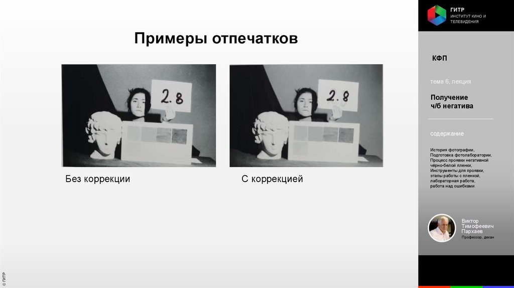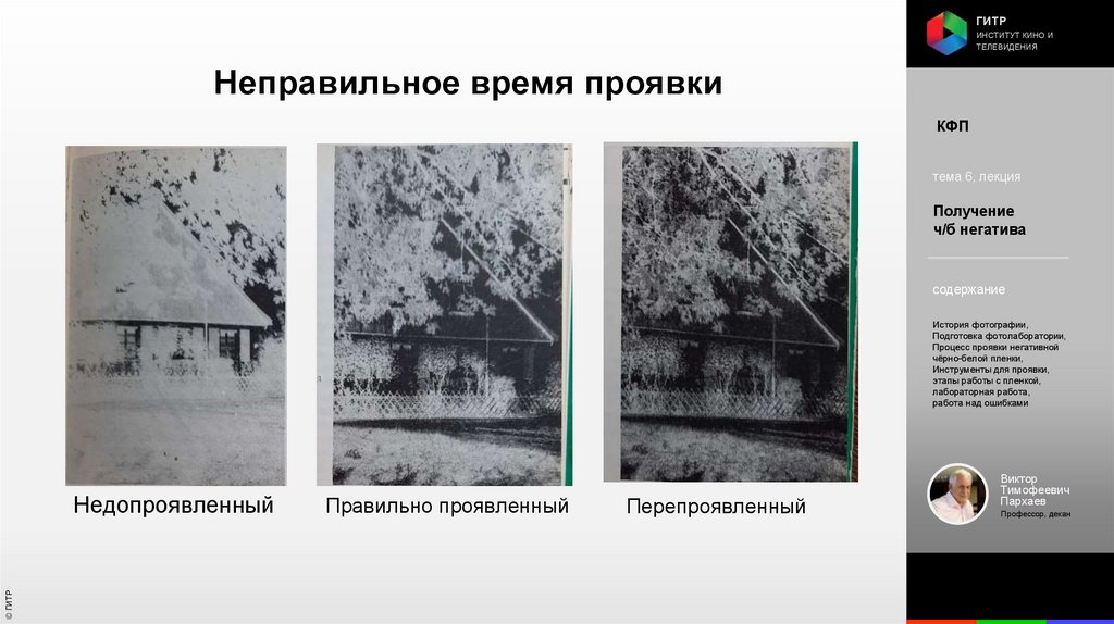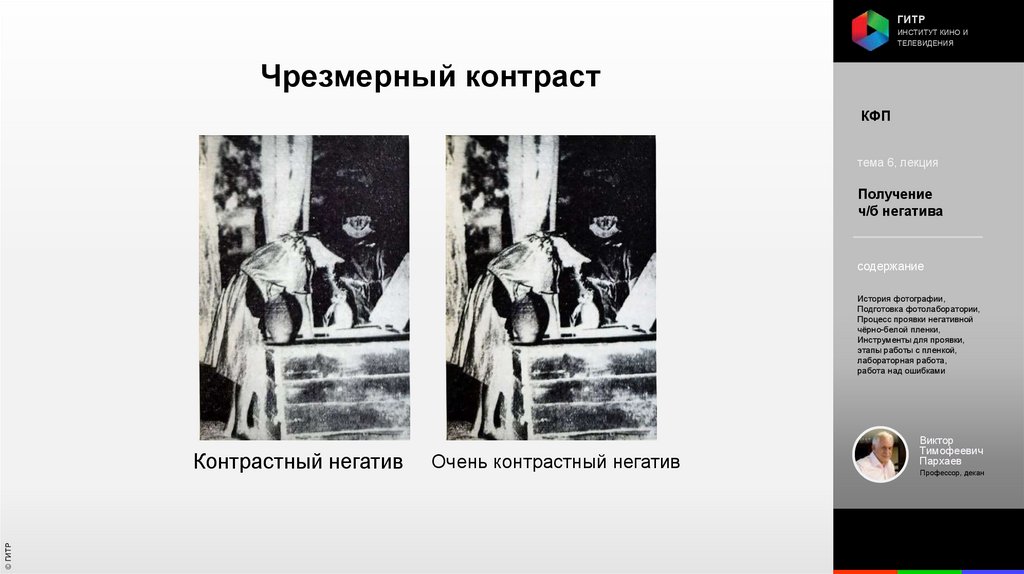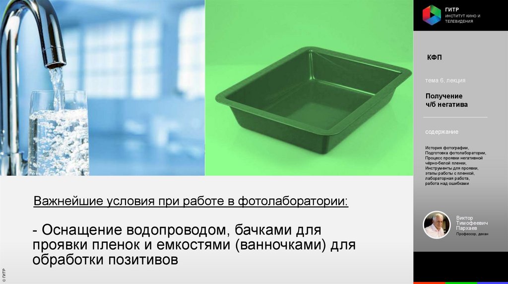 Институт кино и телевидения (ГИТР). Дисциплина: Кинофотопроцессы и материалы