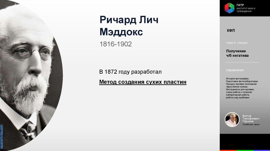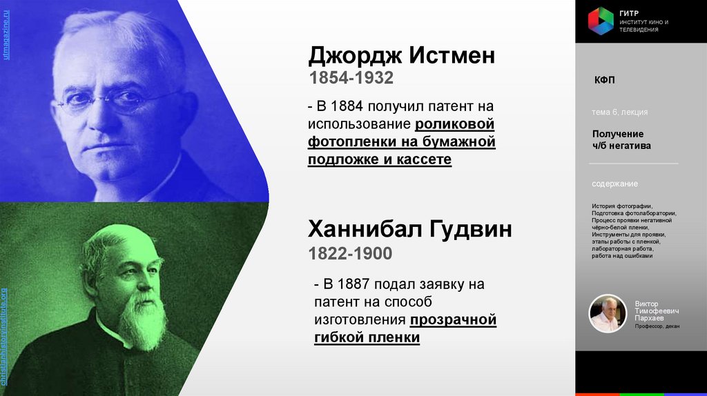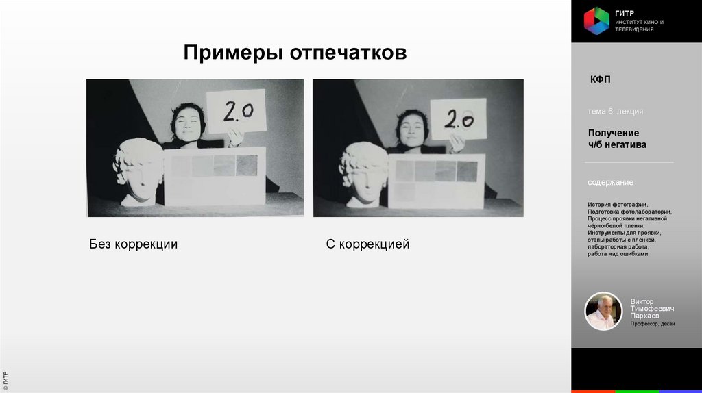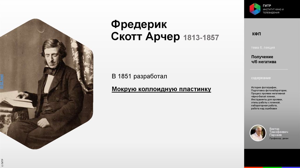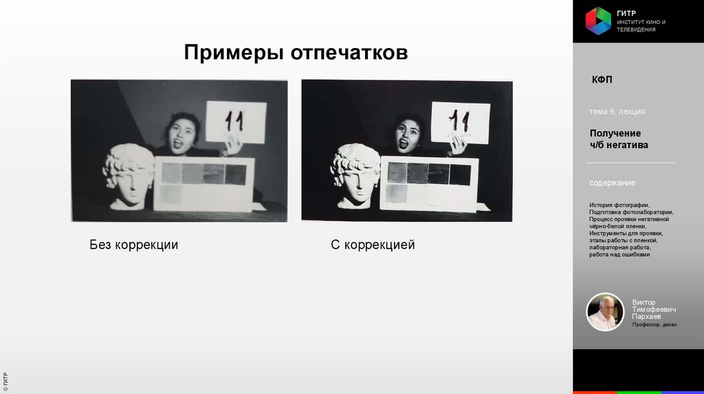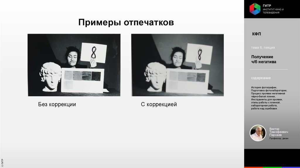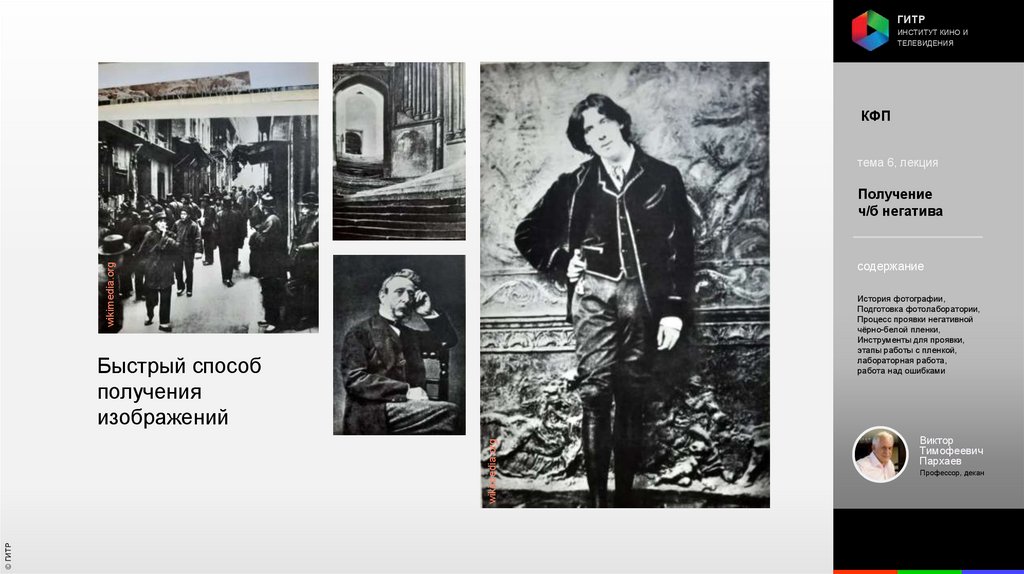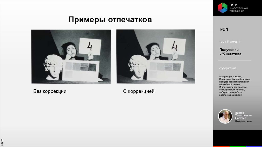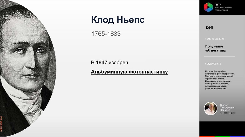 Институт кино и телевидения (ГИТР). Дисциплина: Кинофотопроцессы и материалы