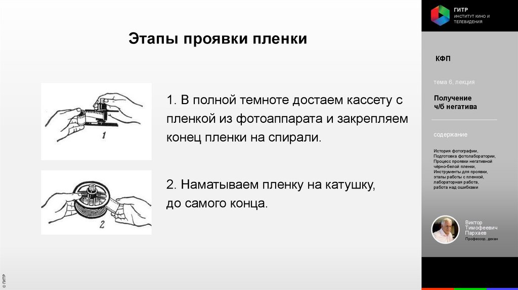 этапы работы с пленкой, лабораторная работа, работа над