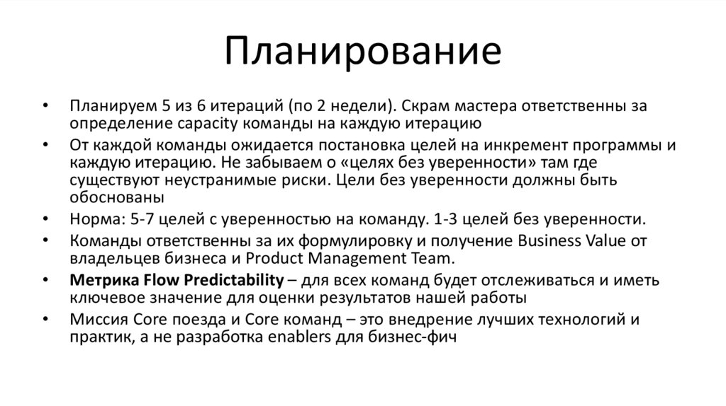 ПланированиеПланируем 5 из 6 итераций (по 2 недели). Скрам мастера ответственны за