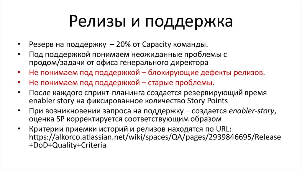 • Не понимаем под поддержкой – блокирующие дефекты релизов.