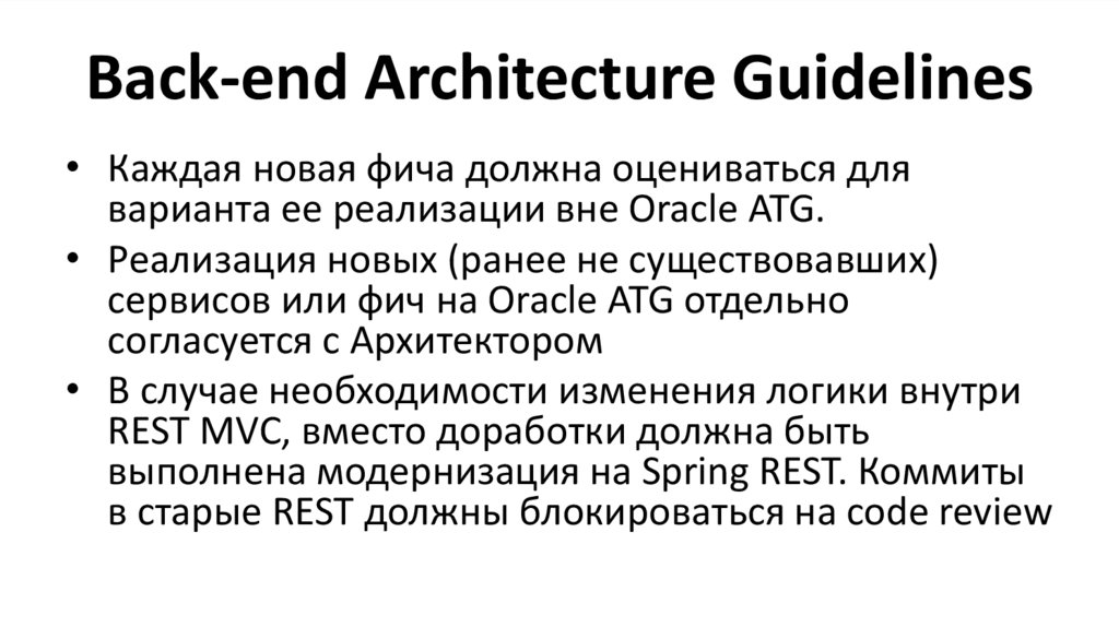 Back-end Architecture Guidelines• Каждая новая фича должна оцениваться для