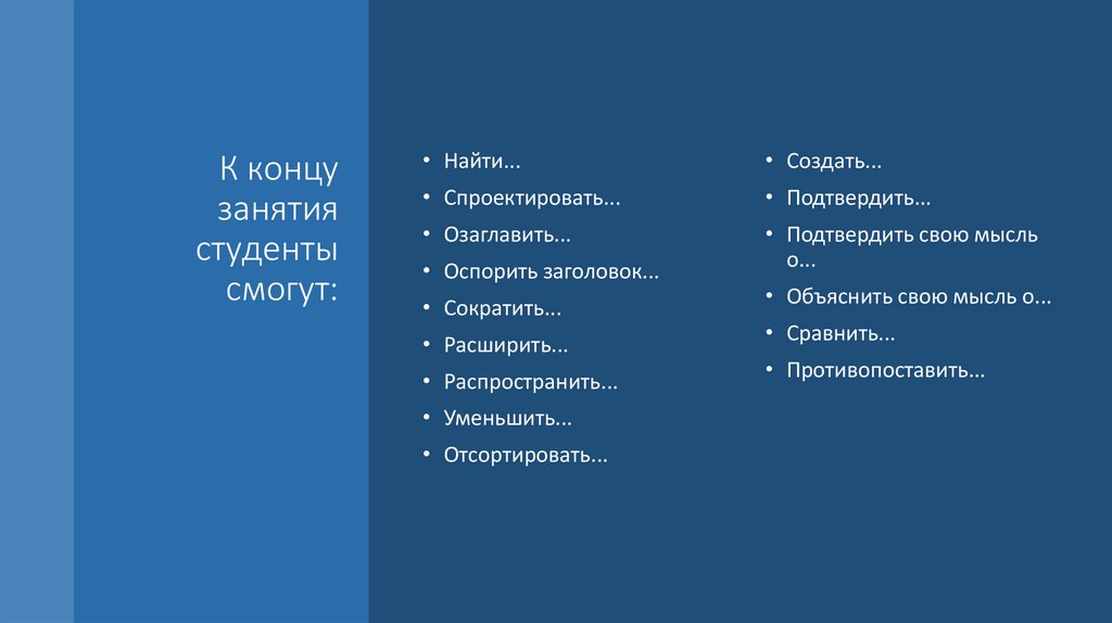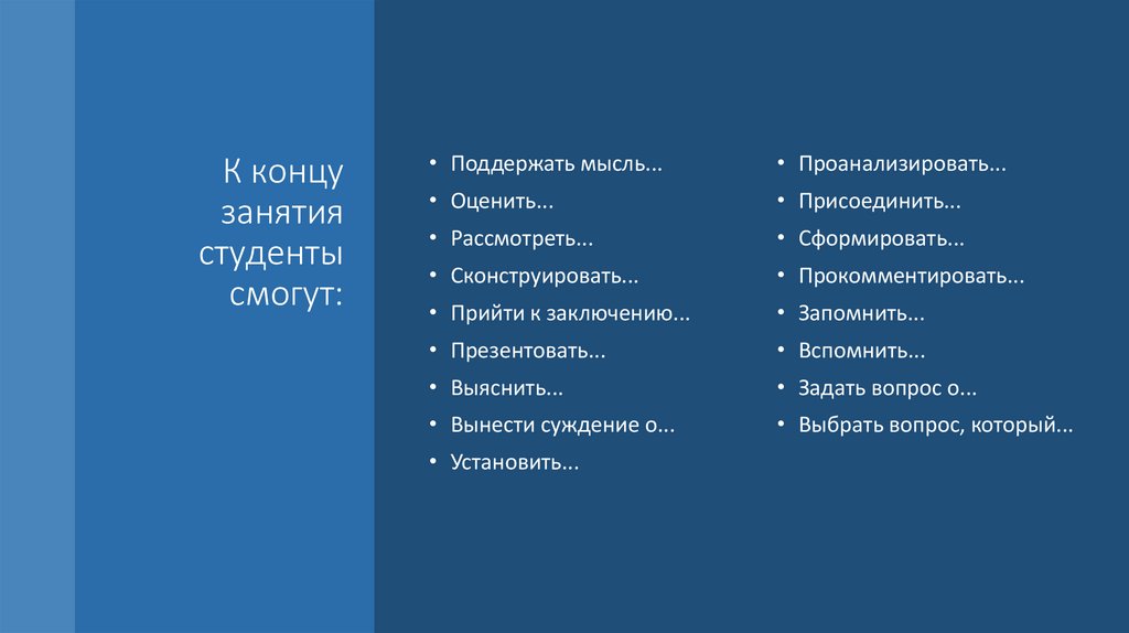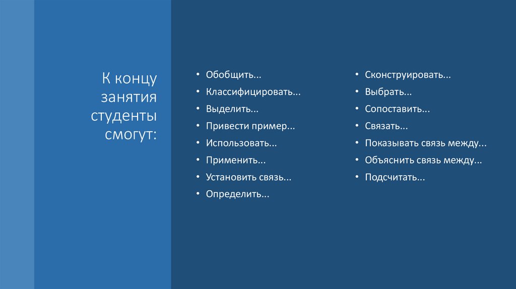 • Студенты смогут осуществлять перенос знаний