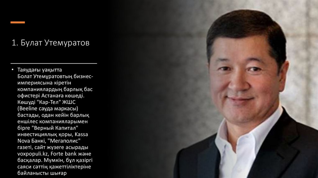2. Тимур КулибаевForbes Kazakhstan бизнесмендерінің бірінші