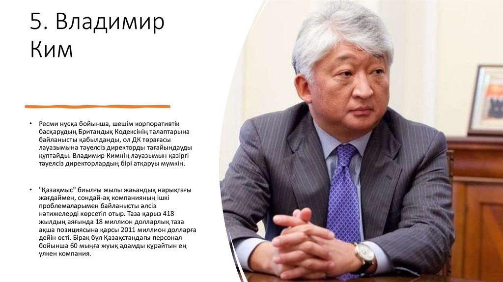 құптайды. Владимир Кимнің лауазымын қазіргі