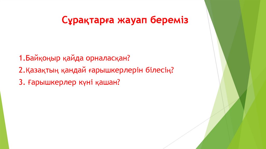 Сұрақтарға жауап береміз1.Байқоңыр қайда орналасқан?