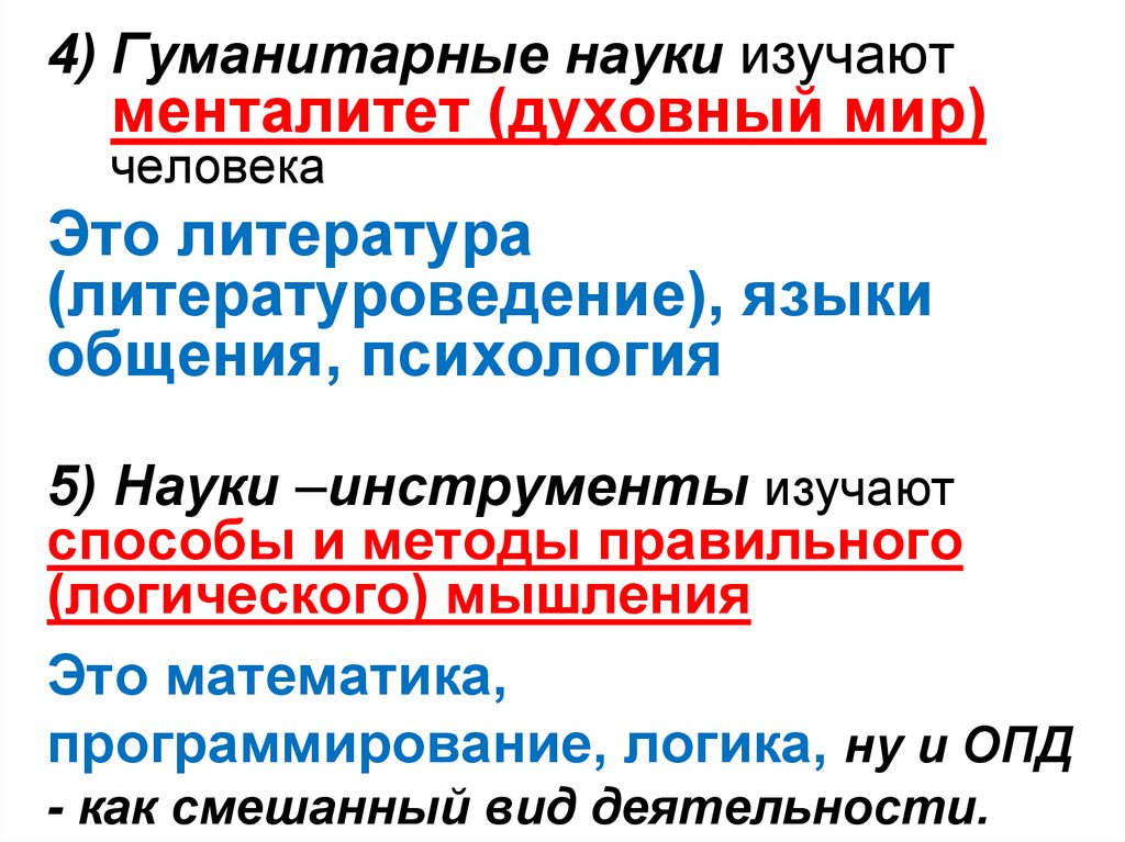 4) Гуманитарные науки изучаютменталитет (духовный мир)
