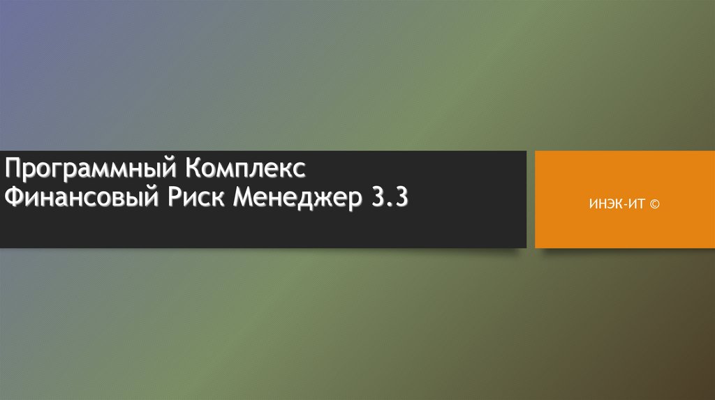Программный КомплексФинансовый Риск Менеджер 3.3