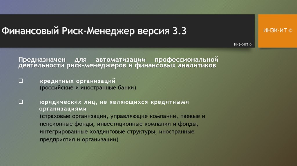 Финансовый Риск-Менеджер версия 3.3ИНЭК-ИТ ©